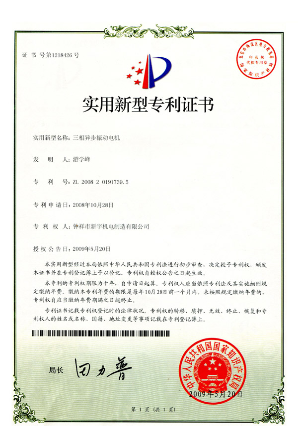 鐘祥新宇機電制造股份有限公司——中國大型振動電機生產基地!聯系人:宋文耀(經理)電話:0724-4231097 13607265083