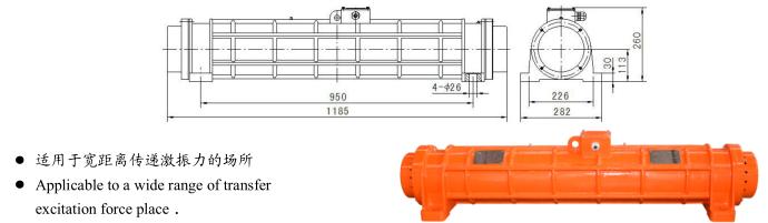 3、由于機座為長形的圓柱體結構(類似細長桿結構),產生的激振力作用點距離(地腳孔的距離)較寬,對于要求在寬距離傳遞激振力的場所尤其適用。